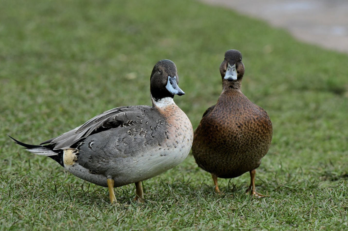 The Pintail/Mallard hybrid duck (drake behind)