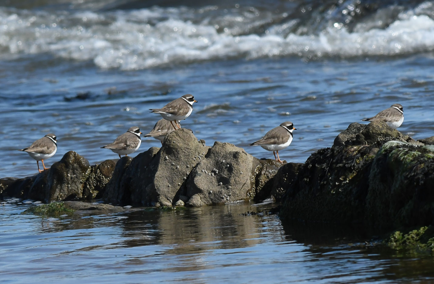 Ringed Plovers flushed by one of the 51 people or 27 dogs on the beach at East Haven